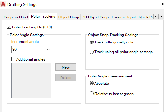 - Nhấn F10 để bật/tắt Polar Tracking.