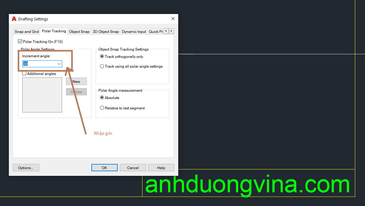 Bước 4: Chọn chế độ góc trong Polar Angle Measurement