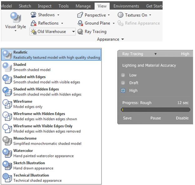 - Chọn Ray Tracing trong phần Visual Style Options ở góc dưới bên phải.