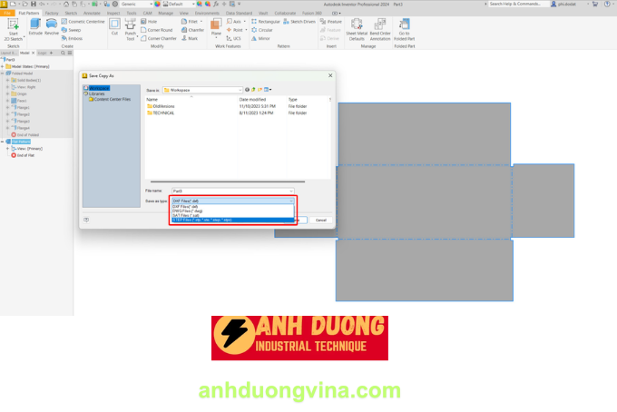 Một trong những cập nhật quan trọng trên Inventor 2024.2 là bạn đã có thể lưu định dạng .STEP cho các file trải phôi – file ở trạng thái Flat Pattern. Điểm ưu việt khi thiết kế sản phẩm trên môi trường Sheet Metal là tính năng trải phẳng chi tiết được thực hiện tự động. Trước đây, Autodesk chỉ hỗ trợ truy xuất file trải tấm dưới các định dạng như IGS, DWG, SAT,… Đến với phiên bản 2024.2, Inventor đã được bổ sung thêm định dạng STEP – định dạng file trung gian phổ biến nhất hiện nay. Nâng cấp này giúp bạn dễ dàng chia sẻ file thiết kế cho các công đoạn sản xuất phía sau.