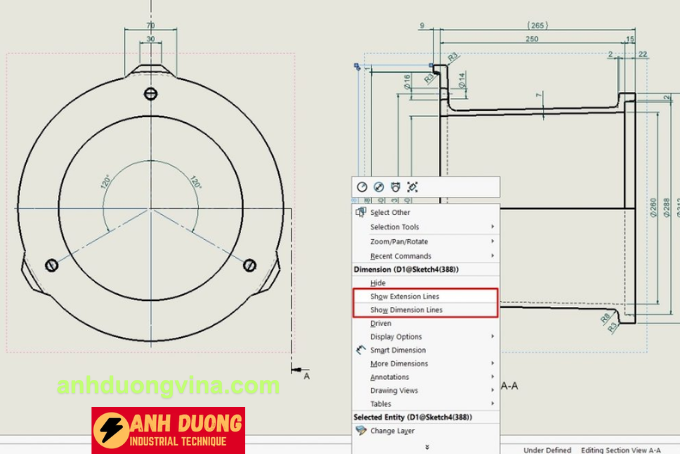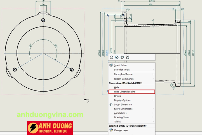 Với các tùy chọn Hide/Show Dimension Line, Extension Line, bạn có thể dễ dàng quản lý các thành phần kích thước trong SOLIDWORKS, từ đó tạo ra các bản vẽ rõ ràng và chuyên nghiệp hơn. Hãy thử áp dụng ngay trong dự án tiếp theo của bạn để nâng cao hiệu quả làm việc!