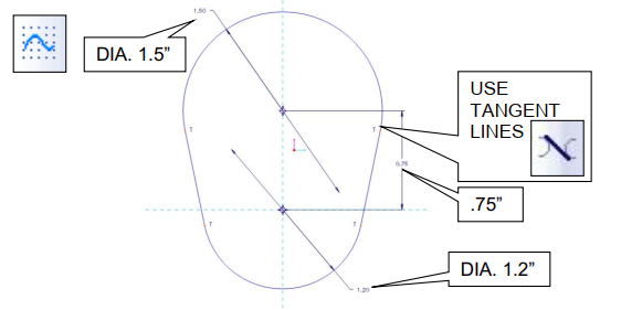 - Đặt các đường kính: DIA. 1.5”, DIA. 1.2”, và .75”.