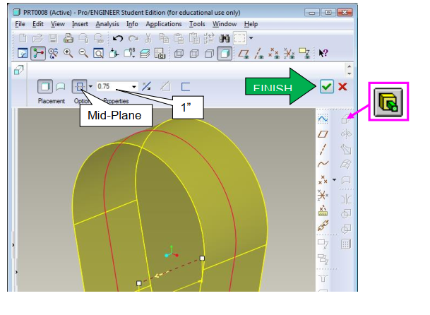 - Chọn tùy chọn Mid-Plane và nhập chiều dài 1”.