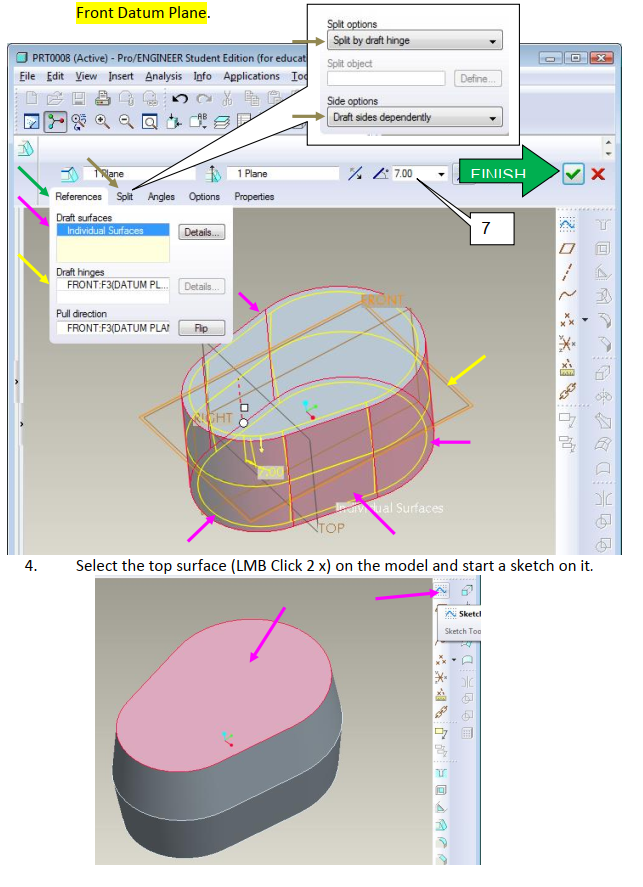 - Trong hộp thoại Draft Hinges, chọn Front Datum Plane.