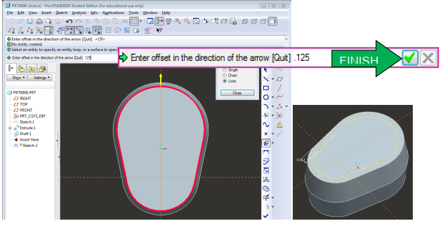 - Nhấn Finish để loại bỏ vật liệu theo chiều sâu đã định.