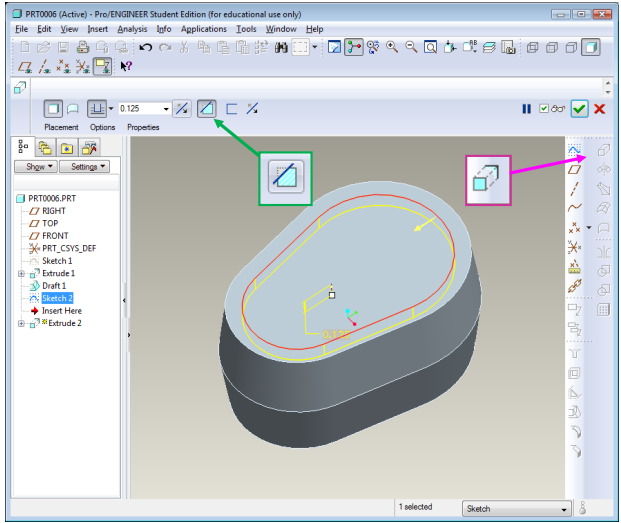Trong thiết kế 3D, việc thêm các đặc tính phụ giúp tạo ra các chi tiết phức tạp và tinh tế hơn cho mô hình. Creo Parametric cung cấp nhiều công cụ mạnh mẽ để thực hiện các bước này một cách hiệu quả. Bài tập dưới đây hướng dẫn bạn cách sử dụng các công cụ như Extrude, Draft, Offset, và Fillet để mô hình hóa các đặc tính phụ trên một phần.