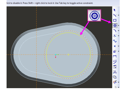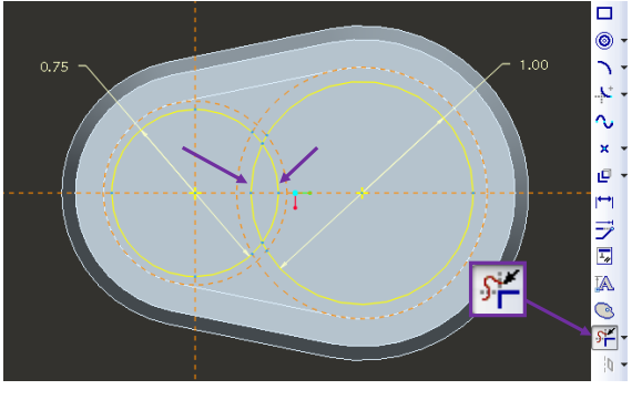 - Chọn nền túi và bắt đầu phác thảo với hai đường tròn .375” DIA.