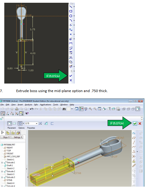 - Sử dụng tùy chọn Mid-Plane và nhập độ dày .750”.