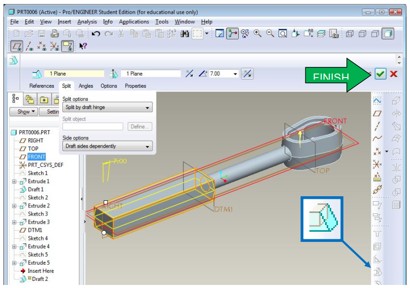 - Đặt góc draft là 7° cho các mặt bên của tay cầm.