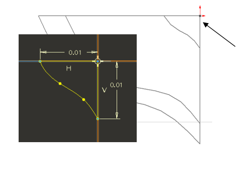 - Vẽ một đường tròn có đường kính 0.010” tại gốc tọa độ.