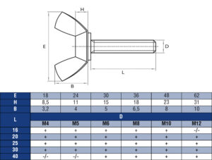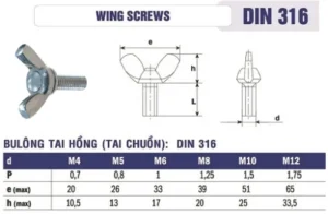 - Các kích thước phổ biến: Chúng tôi cung cấp nhiều kích thước khác nhau của bulong cánh chuồn inox 304, từ các kích thước nhỏ dùng cho các ứng dụng nội thất, thiết bị gia dụng, đến các loại lớn hơn phục vụ cho ngành công nghiệp nặng và xây dựng.