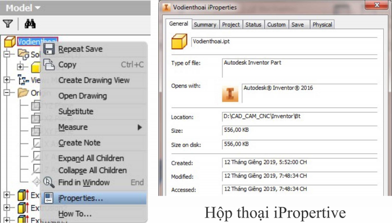 - Chọn iProperties từ menu ngữ cảnh xuất hiện.