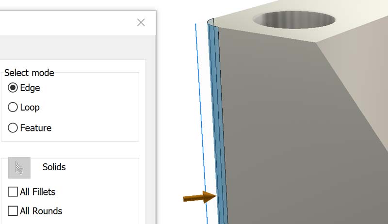 - Edge (Cạnh): Cho phép bạn chọn từng cạnh riêng lẻ để áp dụng Fillet.