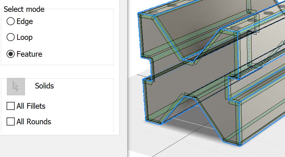 - All Fillets: Chọn tất cả các đường lõm trên khối solid để áp dụng Fillet đồng thời.