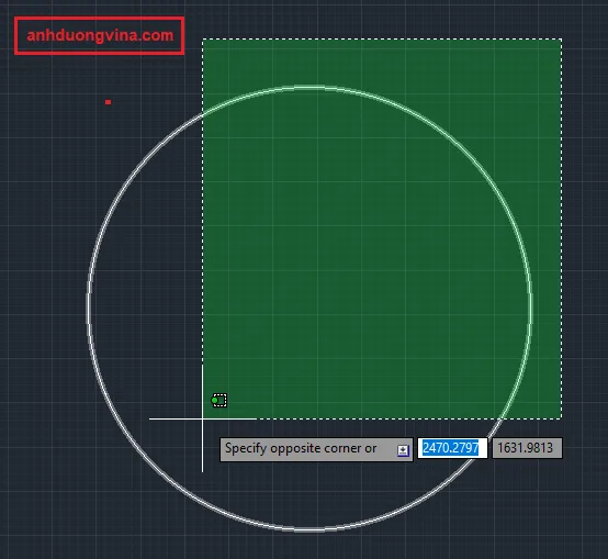 Bước 2 : Chúng ta chọn đường tròn thì Autocad tự hiểu là bạn chọn tâm đường tròn bạn nhé.
