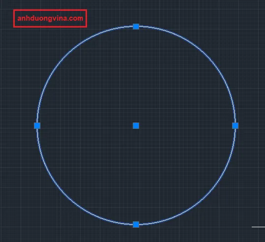 Bước 2 : Chúng ta click chọn đường tròn thì đường tròn sẽ hiện ra tâm mà chúng ta cần