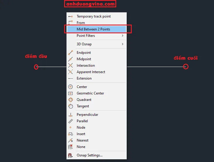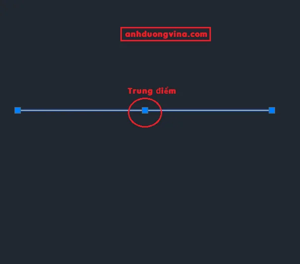 Bước 2 : Sau khi sử dụng lênh này, bạn chọn điểm đầu và điểm cuối thì trung điểm của đoạn thẳng sẽ xuất hiện