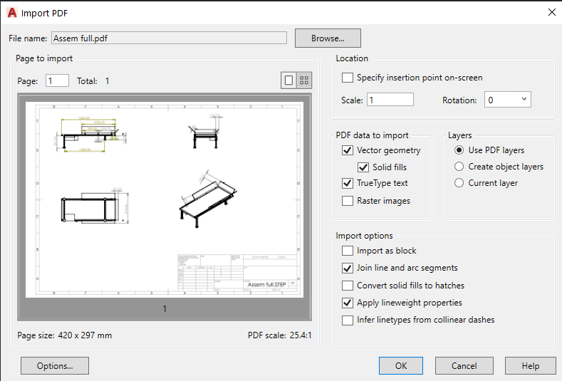 - Bước 4: Nhấn OK để hoàn tất quá trình. AutoCAD sẽ tự động tạo ra đối tượng vector từ file PDF.