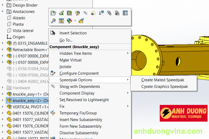 - Mở File Lắp Ráp mà bạn muốn tạo SpeedPak trong SOLIDWORKS.
