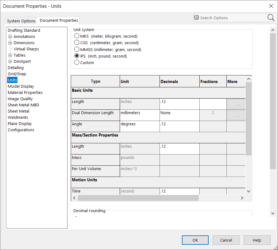 —Cách Thay Đổi Đơn Vị Trong SOLIDWORKS—