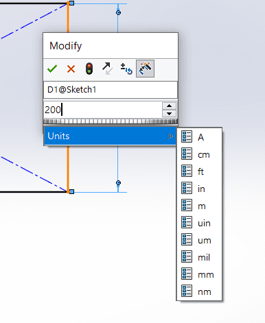 - Khi nhập kích thước, bạn có thể ghi rõ đơn vị sau giá trị. Ví dụ, nếu đơn vị hiện tại là inches nhưng bạn muốn nhập 200mm, hãy gõ