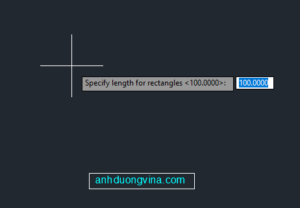 Bước 3 : Gõ chiều dài 100 mm => Gõ chiều rộng 100 mm