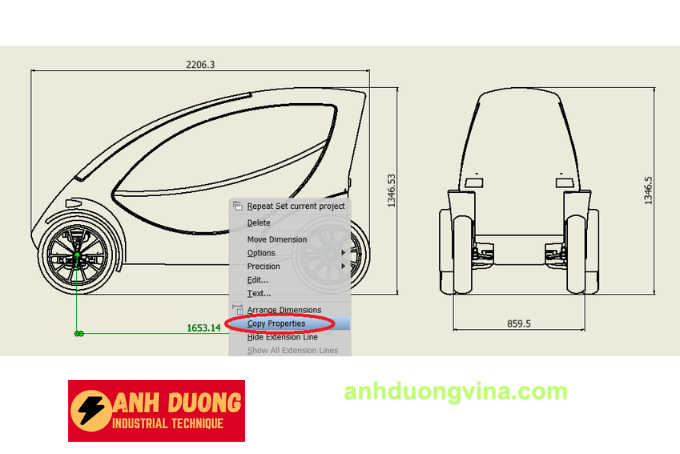 - Nhấp chuột phải vào đường kích thước mà bạn đã thiết lập chuẩn.
