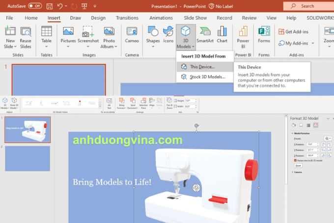 Chèn Mô Hình SOLIDWORKS Vào PowerPoint – Dừng Viêc Chụp Màn Hình
