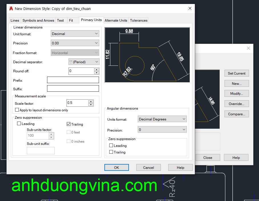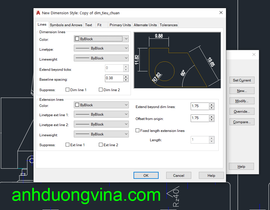 Chi tiết tất cả các thiết lập DimStyle trong AutoCAD