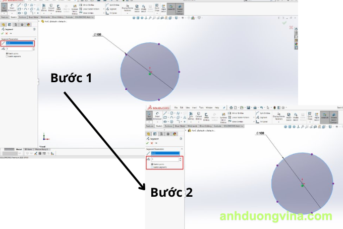 Tiếp theo, bạn chọn phương thức chia tách thành khoảng (Sketch Points) hoặc chia thành các đoạn, đối tượng riêng biệt (Sketch Segments). Sau đó, nhập số lượng cần chia.