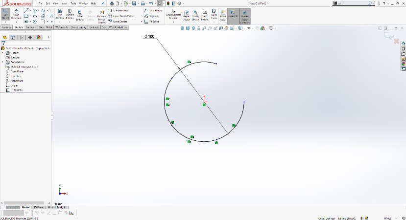 - Sketch Points: Khi chọn phương thức chia theo Sketch Points, đối tượng gốc sẽ không bị chia tách thành các đoạn độc lập. SOLIDWORKS chỉ gán thêm các điểm (Points) để tạo các khoảng. Do đó, đối tượng ban đầu vẫn là một chỉnh thể thống nhất.