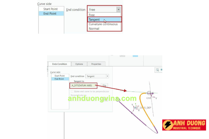 Hình 4: Tùy chọn Tangent cho Ends Condition Xem trước phần tiếp tuyến của đường