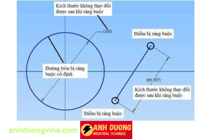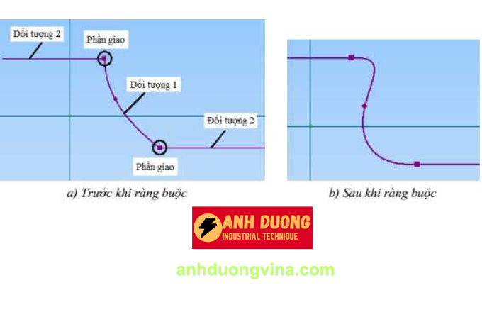 - Bước 2: Chọn điểm hoặc đường cong cần ràng buộc. Ta được kết quả như Hình