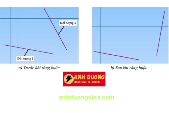 - Bước 3: Chọn đối tượng thứ hai mà bạn muốn ràng buộc vuông góc. Ta được kết quả như Hình