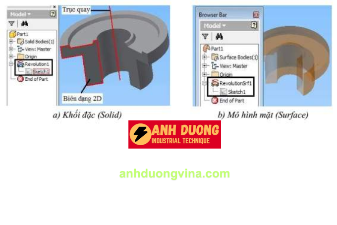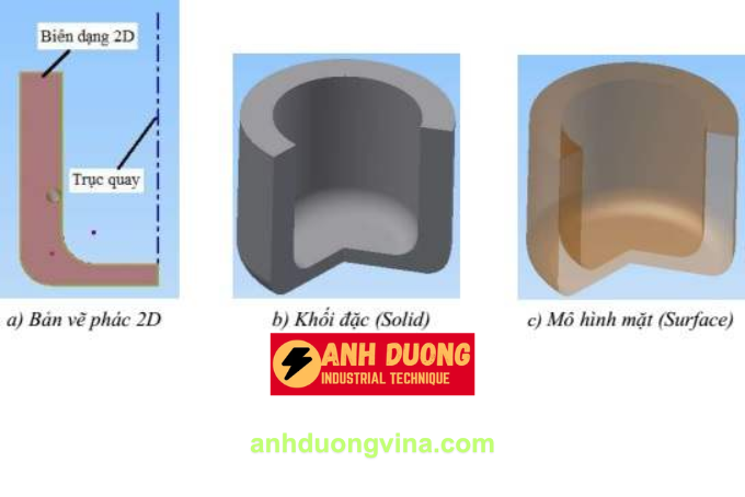 - Tạo Hình Thể Trụ và Nón: Quay các biên dạng hình trụ hoặc hình nón để tạo ra các chi tiết cơ bản trong thiết kế cơ khí.
