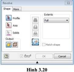 - Trên thanh Create, nhấp vào biểu tượng Revolve. Hộp thoại Revolve sẽ xuất hiện như trong Hình 3.20.