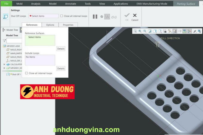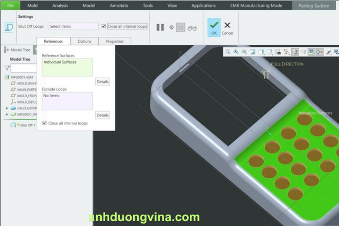 Xem phần 2 tại đây: Công Cụ Shut Off Surface Trong Quá Trình Tách Khuôn Trên Creo_Phần 2