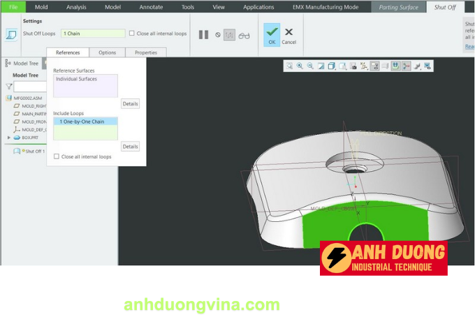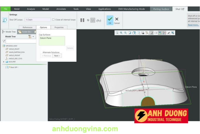 Công Cụ Shut Off Surface Trong Quá Trình Tách Khuôn Trên Creo_Phần 2