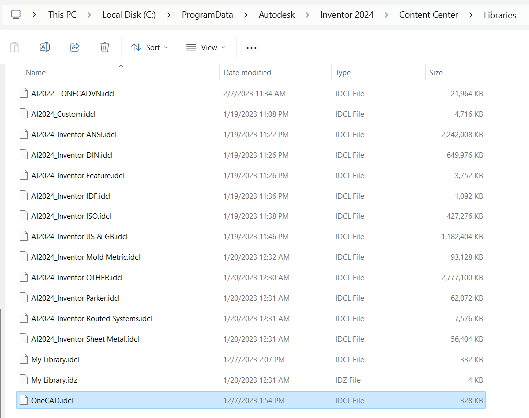 Mặc định, đường dẫn lưu trữ của các tệp IDCL với Inventor 2024 sẽ là: