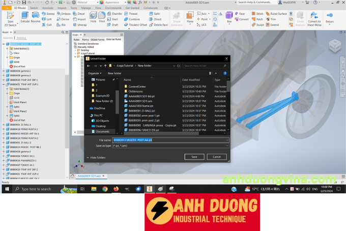 Để tiết kiệm thời gian và tự động hóa việc lưu trữ các file dự án, bạn có thể sử dụng script iLogic. Script này sẽ giúp lưu các file với lệnh Save As và nhớ vị trí lưu lần trước, giúp giảm thiểu việc phải chọn lại đường dẫn lưu mỗi lần.