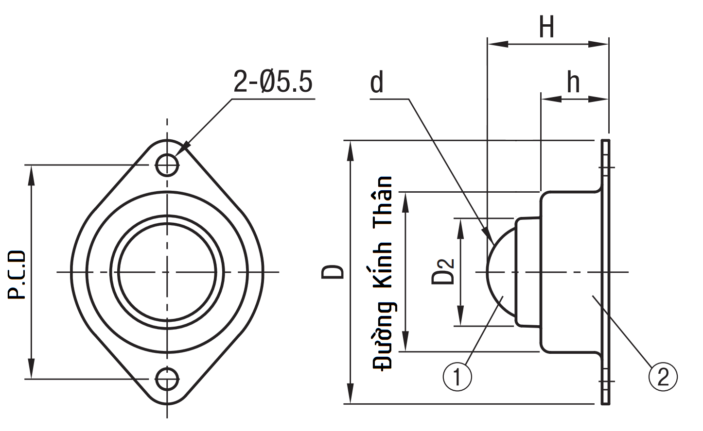 Ball Rollers Press Formed Flange Mounting Type BCHY69