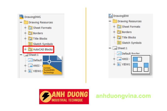Autodesk Inventor là một công cụ mạnh mẽ trong ngành thiết kế cơ khí, cung cấp nhiều tính năng giúp mô hình hóa 3D và tạo tài liệu kỹ thuật. Trong quá trình làm việc trong môi trường Drawing, người dùng thường gặp hai định dạng bản vẽ là IDW và DWG. Trong bài viết hôm nay, Kỹ Thuật Công Nghiệp Ánh Dương sẽ phân tích về hai định dạng này để giúp các bạn hiểu rõ hơn và lựa chọn phù hợp với nhu cầu công việc của mình.