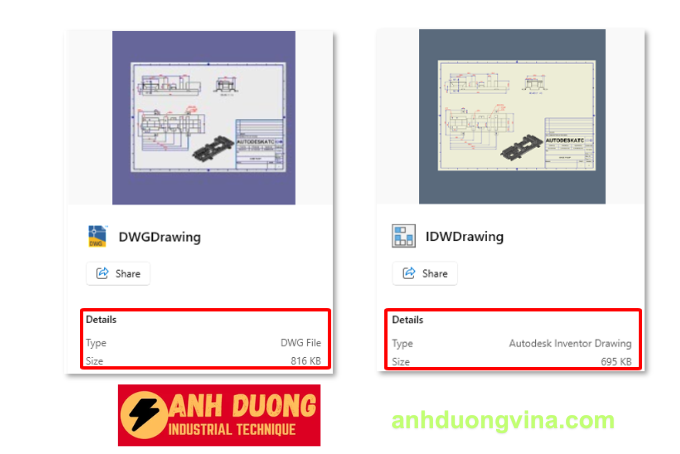 - Dung lượng Lớn Hơn: Do DWG chứa thêm các thông tin và tính năng để tương thích với AutoCAD, dung lượng file thường lớn hơn so với IDW. Điều này có thể ảnh hưởng đến việc lưu trữ và chia sẻ, đặc biệt khi làm việc với các dự án lớn có nhiều bản vẽ.