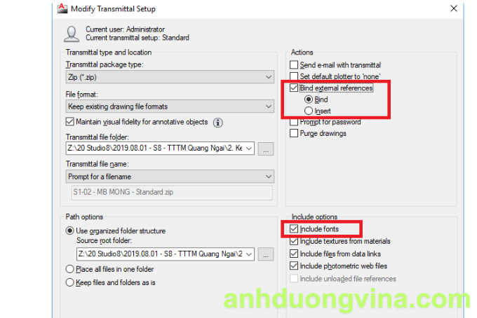 - Include Fonts: Tùy chọn này cho phép bạn kèm theo các font trong bộ đóng gói, đảm bảo người nhận có thể xem bản vẽ đúng cách.