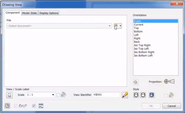 - Nhấp chọn vào nút Browser ở phần File trong hộp thoại Drawing View để tìm đường dẫn đến chi tiết cần tạo bản vẽ.