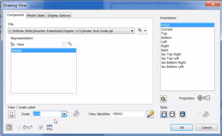 - Orientation (Định hướng): Chọn hình chiếu chính, xác định mặt nào của chi tiết sẽ được hiển thị trước.