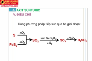 - Hòa tan SO3 vào H2SO4: Cuối cùng, SO3 được hấp thụ vào H2SO4 để tạo ra oleum (H2SO4 giàu SO3), sau đó pha loãng để tạo ra H2SO4 thương mại.