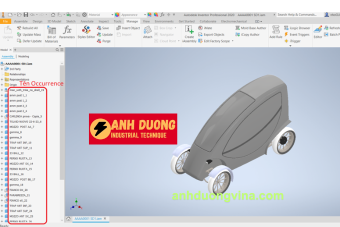 Trong quá trình thiết kế và lắp ráp các sản phẩm phức tạp bằng Autodesk Inventor, việc quản lý tên Occurrence của các bộ phận trong Assembly là rất quan trọng. Khi thêm hoặc xóa các bộ phận giống nhau, tên Occurrence mặc định sẽ tiếp tục đánh số từ số lớn nhất đã tồn tại, bất kể số lượng thực tế các bộ phận hiện tại. Điều này có thể gây nhầm lẫn và khó quản lý khi số thứ tự không phản ánh đúng số lượng các bộ phận hiện có.