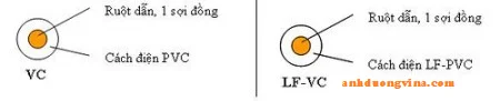 Như hình trên, thì chúng ta có 2 loại là VC và LF-VC . VC có nghĩa là cách điện PVC thông thường, LF-VC có nghĩa là cách điện PVC không chì. Vậy khi chúng ta mua vật tư, thì nên chọn loại LF-VC vì chất lượng vỏ sẽ tốt hơn loại thông thường, và điều đặt biệt là không hại sức khỏe con người