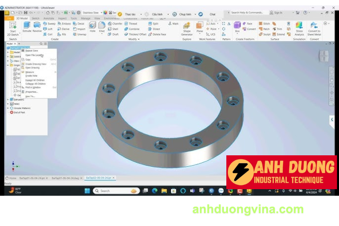 Hãy xem thêm tại: Làm quen với Inventor cho người mới bắt đầu (Phần 2) để biết rõ thêm